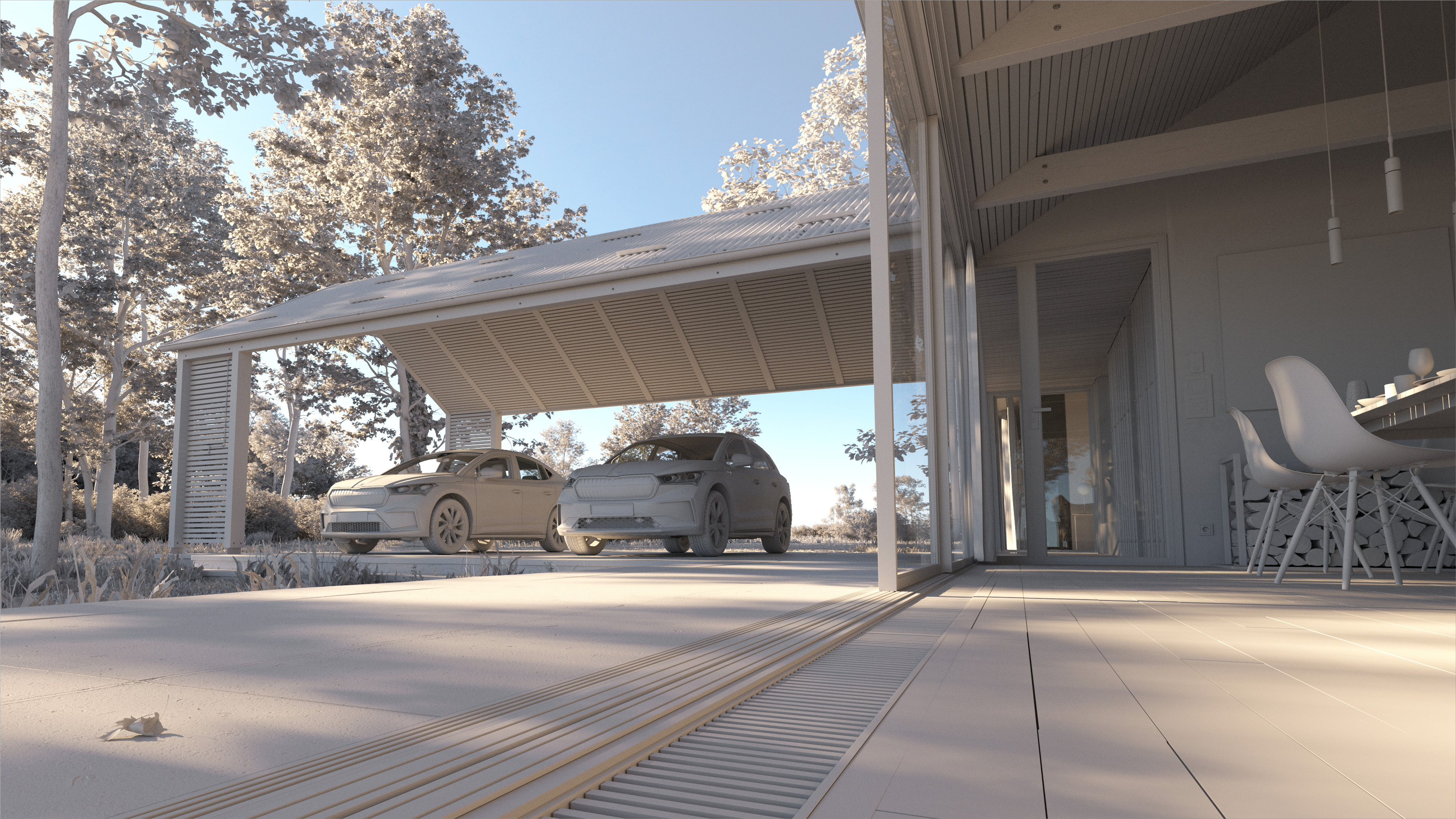 The ENYAQ RS IV and COUPÉ RS IV are the most advanced and sophisticated cars ever produced by Škoda. Therefore, they deserve a top-tier location for their global launch.This location should be stylish, contemporary, eco-friendly, and spacious enough to accommodate both hero cars.Such a location would be difficult to find anywhere in the world, but we found it easy and enjoyable to design one with the help of our architects, and 3D artists, thanks to the advantages of full CGI.